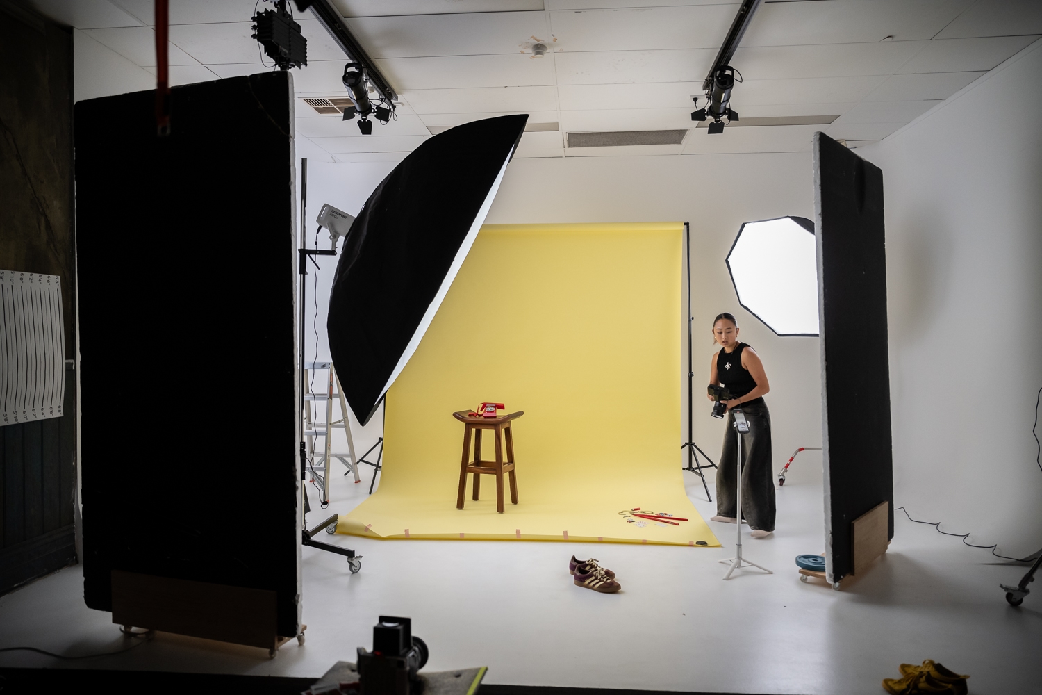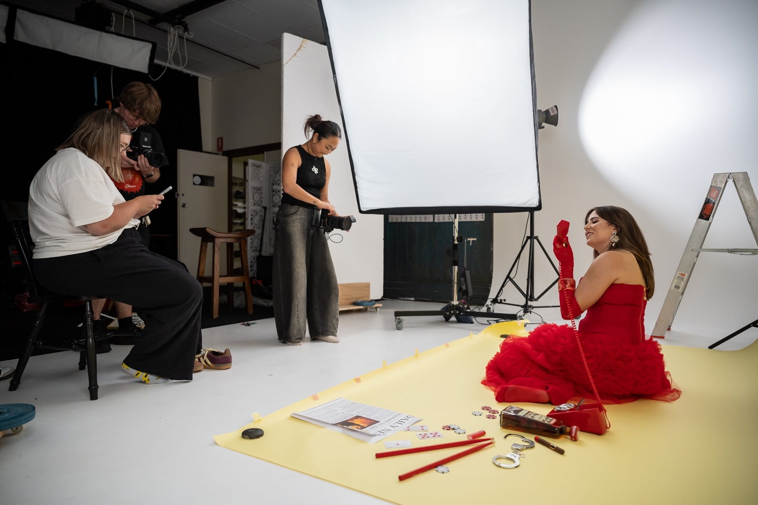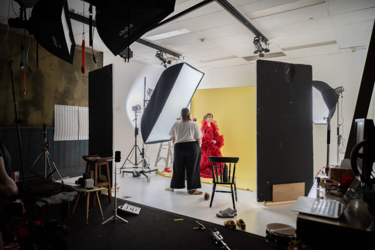 We are so happy he still loves us enough to visit occasionally and to shoot with us for his exciting projects. Here he is working with his regular collaborator Alana at Albie management, shooting promo images for local singer Teresa. Teresa is an indie pop artist – Her early works include 2020 dream pop track Udontfkncare and the 2022 rock anthem Heatstroke – both introspective explorations of ego, superego and personal relationships. This shoot combined stills and video content to support the launch of her new single. Local videographer hgflqgf was on board to shoot gorgeous video using our giant modifier (Goliath) with one of our Amaran 300c lights. The incredible local stylist Jessica brown from @blockadl provided a wardrobe selection to die for, and everything looks fab! Can’t wait to see the resulting work!
