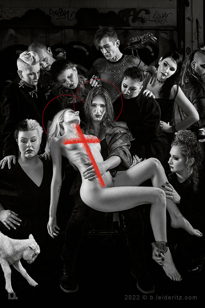 Brent Leideritz’s portrait photography is centred in creatively capturing the moment of collaboration between photographer and individual. In most instances, these moments coalesce into larger photographic series that explore themes such as: identity formation and politics; the human condition and connectivity; resistance of oppressive structures; cultural agitation for positive discourse and challenging religious and societal norms. Their practice interrogates and challenges normative ways of being, providing a space to those that are ‘other’ to be seen and heard. Developing their practice from within ‘othered’ communities as a neurovariant, queer, goth, freak, Brent gives space for playful opposition, collaboration, gender queering and representation. This creates space for communal deconstruction and reconstruction of the symbolism, myth and narratives that exist within normative and conservative society. Brent’s work creates an ever-unfolding set of questions for viewers to explore, and in doing so, asks those who see the resultant photographic artworks to consider a viewpoint that may differ from their own, as a way to move beyond dated binaries of the past.