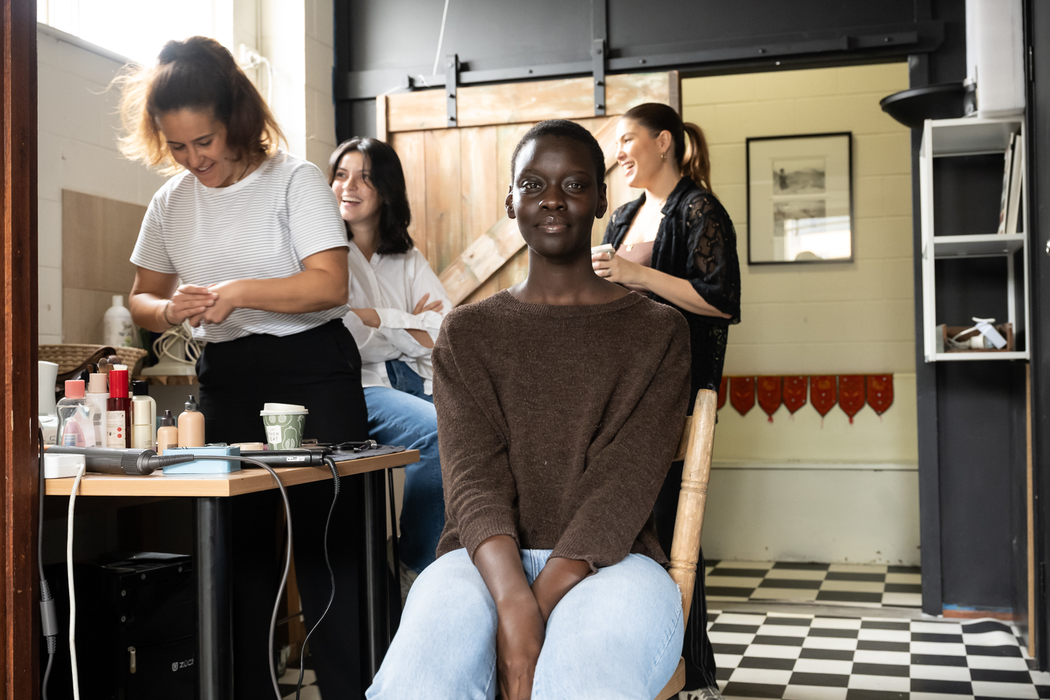 We have a well-equipped makeup and change room at the studio, and this can be booked for your pre-shoot hair and makeup, and extended for the duration of your shoot. We have a range of preferred freelance hair and makeup artists that we work with on a regular basis. When you book the full shoot makeup and hair package we get in touch with our team to book someone in for you.